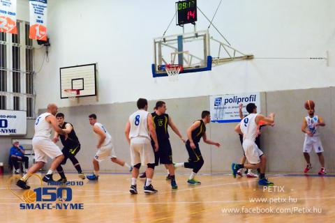 A pécsi mérkőzéshez hasonlóan indult a találkozó a soproniak számára, akik védekezésben és támadásban sem tudtak maradandót alkotni. Eközben a szépen kosárlabdázó szombathelyi fiatalok egymás után szerezték a kosarakat (0-6). Karácsonyi pontjaival kapaszkodott a SMAFC-NYME (4-8), de igazán a negyed derekán ébredt fel az egyetemi együttes. A palánk alatt Csaplár-Nagy tarthatatlannak bizonyult, kosaraival fordított a hazai gárda (11-10). Baloghék védekezésben is jobban odatették magukat, de a Falco Simon és Varga büntetőivel tartotta magát (17-17). Török és Csaplár-Nagy nagyon érezték egymást a palánk alatt, de Karagity és Bazsó ponterős játékával fordított a Falco II. a negyed végére (21-24).
